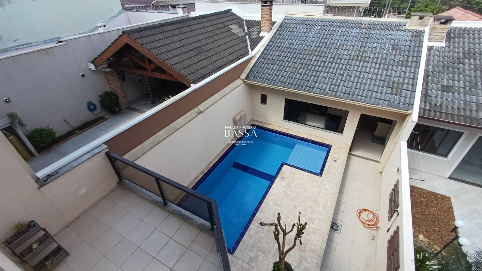 • Piscina de alvenaria e azulejos com aquecimento a gás, capacidade aproximadamente 21.000 litros tamanho (6m x 2,4m) com ambiente de hidromassagem associado ao lado da edícula (1,5m x 2m)